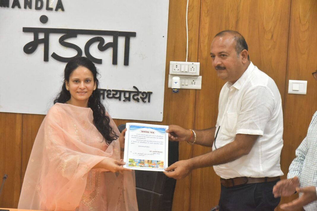 सेवाजोहार (मंडला):- रपटाघाट के सौन्दर्यीकरण में सहयोग करने वाले व्यक्ति तथा संस्थाओं को प्रशंसा पत्र प्रदान करते हुए कलेक्टर डॉ. सलोनी सिडाना ने कहा कि नगर तथा नर्मदा जी के घाटों को स्वच्छ और सुंदर बनाना प्रशासन के साथ-साथ स्थानीय लोगों की जिम्मेदारी है, जिसके लिए समन्वित और योजनाबद्ध प्रयास आवश्यक हैं। रपटाघाट के सौन्दर्यीकरण में स्थानीय लोगों ने सहयोग कर अनुकरणीय पहल की है, जो अन्य लोगों को भी प्रेरित करेगी। जनहित के लिए किए गए कार्य आत्मसंतुष्टि भी प्रदान करते हैं। नगर तथा नर्मदा जी के घाटों को जनभागीदारी से स्वच्छ और सुंदर बनाने का अभियान प्रारंभ किया गया है उन्होंने विश्वास व्यक्त किया कि जिलेवासी निश्चित रूप से इस अभियान में सहभागी बनेंगे। इस अवसर पर कलेक्टर ने कहा कि रपटाघाट के सौन्दर्यीकरण में सहभागिता करने वाले लोगों को प्रशंसा पत्र प्रदान किया तथा जिले में सीएसआर मद के बेहतर उपयोग के संबंध में प्रशासन से समन्वय करने की बात कही। कलेक्ट्रेट के गोलमेज सभाकक्ष में संपन्न हुए इस कार्यक्रम में जिला श्रम अधिकारी डीके जैन एवं महाप्रबंधक जिला उद्योग एवं व्यापार नंदकिशोर वास्कले सहित संबंधित उपस्थित रहे।