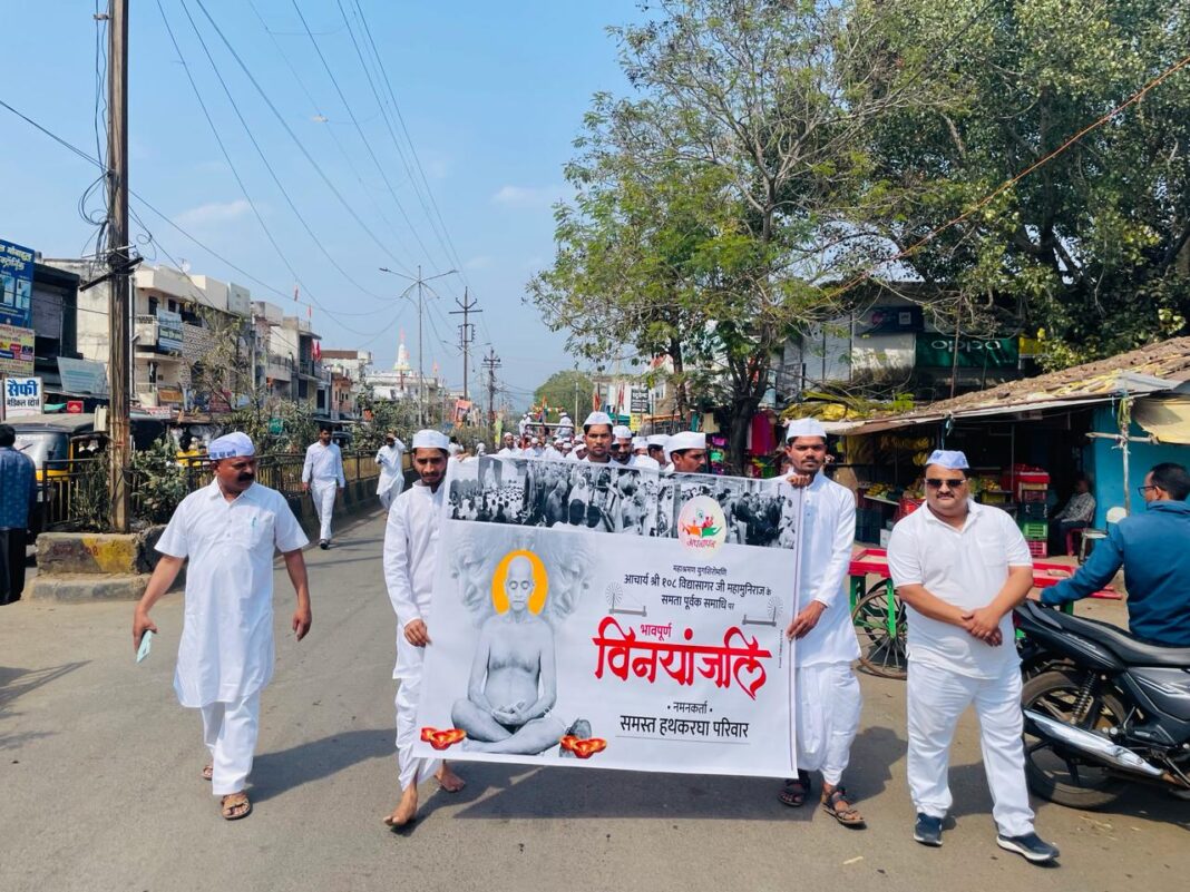 जनहित के कार्यों पर विशेष रूप से भक्तों ने आचार्य श्री के द्वारा जनहित में किए गए कार्य विशेष कर हथकरघा संचालन, इंडिया नहीं भारत बोलो, जीव दया हेतु गौशाला संवर्धन संरक्षण, बालिकाओं की उच्च शिक्षा के लिए प्रतिभास्थली, शुद्ध आहार शाकाहार, प्रत्येक व्यक्ति को उसकी भाषा में ही प्राथमिक शिक्षा हिंदी भाषा पर जोर आदि आदि विषयों पर प्रकाश डालते हुए उनके द्वारा छोड़े गए कार्यों को पूरा करने का संकल्प लिया कार्यक्रम में सामाजिक युवाओं महिलाओं बच्चों के साथ-साथ जिला प्रशासन पुलिस प्रशासन नगर पंचायत प्रशासन ने भी भाग लिया।