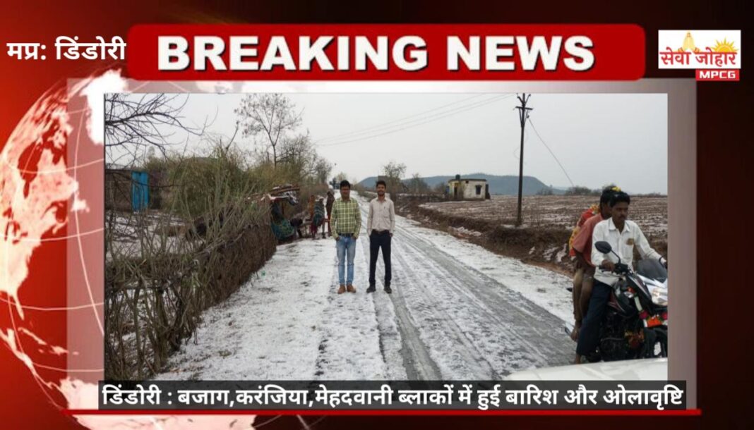 वही डिंडोरी जिले में सोमवार की दोपहर हुई बारिश और ओलावृष्टि से बजाग ,मेहदवानी,करंजिया,डिंडोरी,सहित अन्य ब्लाकों में किसानों के लिए तबाही से कम न थी। कई ग्राम पंचायतो की सड़कों व खेतो में जमकर हुई ओलावृष्टि से सफेद चादर की तरह ढकी दिखाई दी। ओलावृष्टि का नजारा देख ऐसे किसानों की आँखों मे आँसू तक आ गए जिन्होंने खेतो में लगाई गई दलहनी फसलों को अपनी आँखों से बर्बाद होते देखा है।