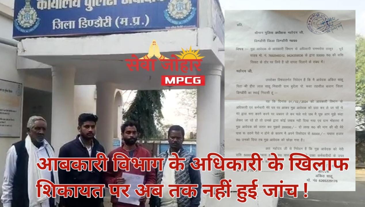 मामला फरवरी माह का था जहां शिकायत कर्ता ने आरोप लगाया था कि जिला आबकारी विभाग के अधिकारी एवं कर्मचारी द्वारा शराब बेचने के झूठा केस बनाने और छोड़ने के नाम पर दो लाख रुपए बतौर रिश्वत की मांग की थी डरा सहमा परिवार ने रिश्तेदारों से रूपयो की व्यवस्था कर मामला का सेटेलमैनेट 50 हजार रुपए में किया। जब थोड़ा डर दिल से अलग हुआ तब साहू परिवार डिंडोरी जिला मुख्यालय पहुंचकर पुलिस अधीक्षक कार्यालय में इसकी लिखित शिकायत कर रुपए वापस दिलाने और संबंधितों के विरुद्ध कार्यवाही की मांग की है। इस दौरान लोकसभा चुनाव भी संपन्न हुए व्यवस्ता का दौर था। लेकिन अब पुलिस को इस बात की जरूर जांच करना चाहिए की शिकायत सच है या झूठ !