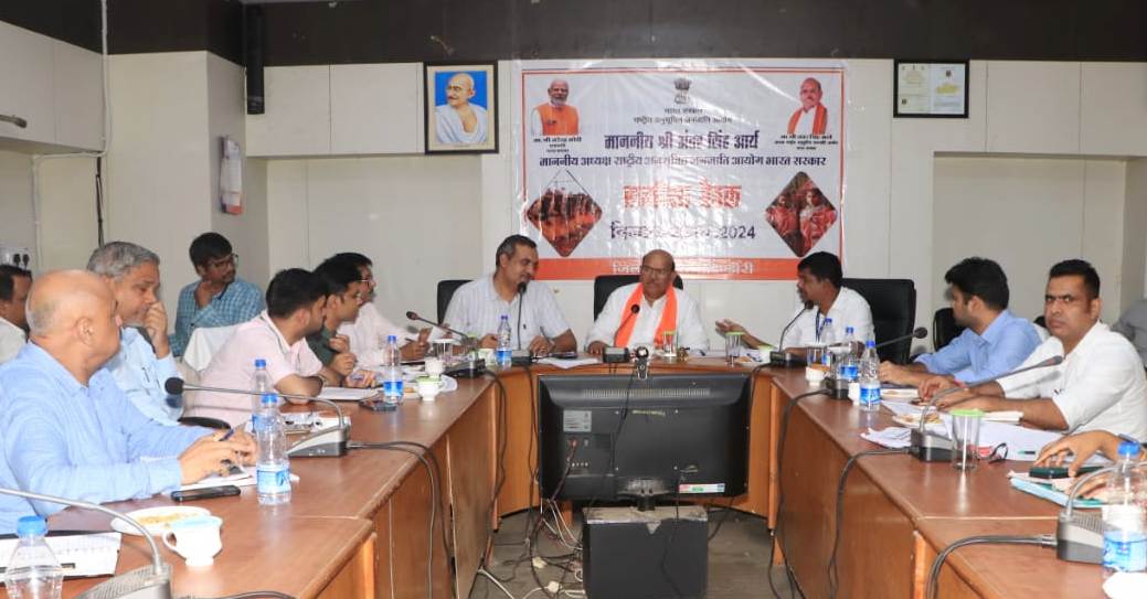 सेवाजोहार (डिंडौरी ):- राष्ट्रीय अनुसूचित जनजाति आयोग के अध्यक्ष अंतर सिंह आर्य ने शुक्रवार को कलेक्ट्रेट सभाकक्ष में जिला स्तरीय समीक्षा बैठक ली। उन्होंने जिले में शासन की जनकल्याणकारी योजनाओं की प्रगति एवं विभागीय कार्यां की समीक्षा करते हुए कहा कि आदिवासियों कों शिक्षा, स्वास्थ्य, सड़क, बिजली, पानी, रोजगार और शासन की योजनाओं का लाभ मिले इसकी निगरानी करना आयोग की जिम्मेदारी है। उन्होंने कहा कि आदिवासी समुदाय को स्वास्थ्य केंद्रों में बेहतर चिकित्सा सुविधा मिले, स्कूलों में बच्चों को अच्छी शिक्षा मिले, उचित मूल्य की दुकानों से राशन और शासन की योजनाओं का लाभ मिले इस उद्देश्य का जिला प्रशासन पूरी तरह पालन करे।