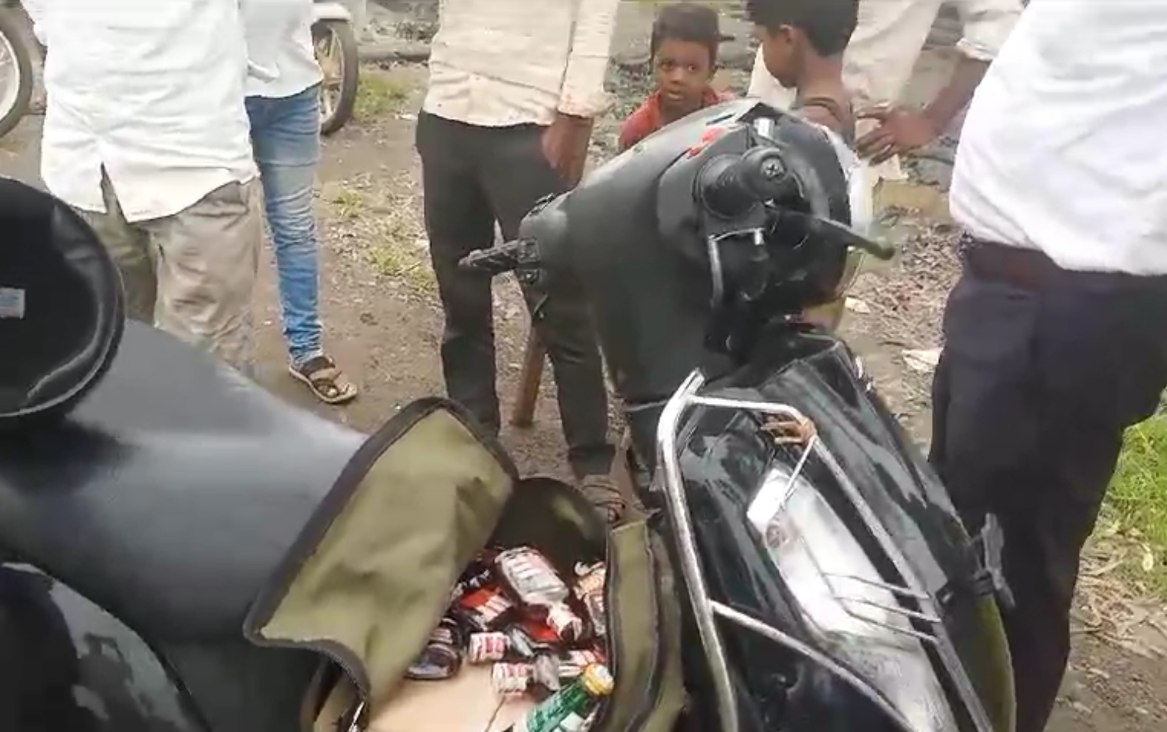 सेवाजोहार (डिंडोरी):- डिंडोरी कोतवाली थाना क्षेत्र अन्तर्गत अमरकंटक मार्ग पर पॉलिटेक्निक कालेज के पास कूड़ा के ग्रामीणों ने एक स्कूटी सवार युवक को रोका जो थैले में शराब की खेप ला रहा था। इसके बाद ग्रामीणों ने अपनी सेफ्टी के लिए वीडियो भी बनाकर सोशल मीडिया में वायरल किया है। जिसमे ग्रामीण युवक से पूछ रहे है की हमने तुम्हे मारा पीटा तो नही और तुम्हारे पैसे तो नही छुड़ाए। ग्रामीणों को भय था की उनके खिलाफ युवक के द्वारा उल्टी लूट की शिकायत कर दी जाती।
