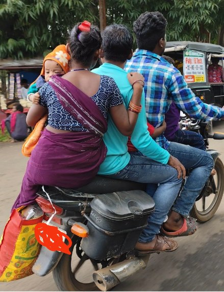ऐसा ही एक नजारा सेवाजोहार टीम के कैमरे में कैद हुआ जहाँ बाइक में सवार एक व्यक्ति अपने साथ दो अन्य युवक,एक महिला और तीन बच्चों सहित 6 लोग बैठकर अपने गंतव्य की ओर जा रहे थे। यातायात नियमो की ऐसी अनदेखी या कहें कि बाइक चालक ने धज्जियां उड़ाते हुए सड़क में बेख़ौफ़ तफरी की।