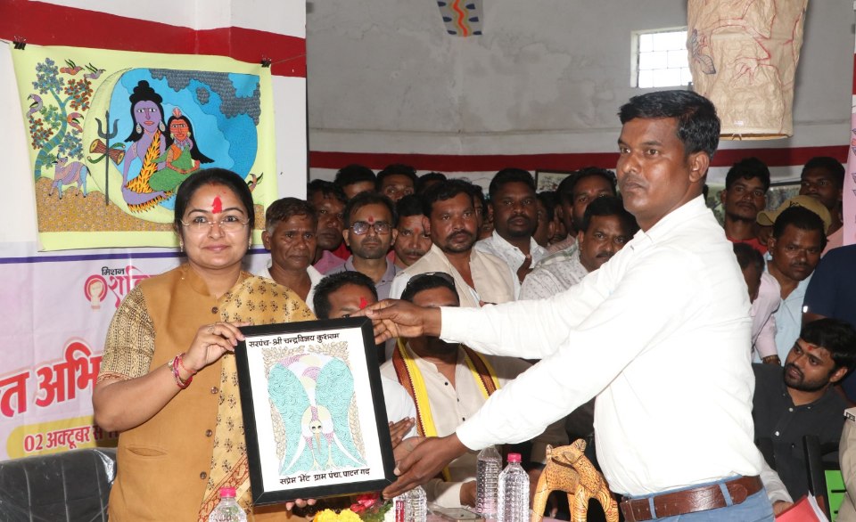 सेवाजोहार (डिंडोरी):- नगरीय विकास एवं आवास विभाग राज्यमंत्री व जिले की प्रभारी मंत्री प्रतिमा बागरी ने पाटनगढ़ स्थित गोंडी पेंटिंग केंद्र का दौरा किया। इस दौरान उन्होंने मिशन शक्ति के तहत बेटी बचाओ बेटी पढ़ाओ उत्सव में भाग लिया, जिसमें मंत्री श्रीमती ने बागरी नवरात्रि के शुभ अवसर पर कन्याओं की पूजन कर नवजात बच्चियों को जन्मोत्सव किट वितरित की। नगरीय विकास एवं आवास विभाग राज्यमंत्री व जिले की प्रभारी मंत्री प्रतिमा बागरी ने गोंडी पेंटिंग के पुरोधा पुरुष स्वर्गीय श्री जनगण सिंह श्याम को याद किया । नगरीय विकास एवं आवास विभाग राज्यमंत्री व जिले की प्रभारी मंत्री प्रतिमा बागरी ने गोंडी पेंटिंग के पुरोधा पुरुष स्वर्गीय जनगण सिंह श्याम को पुष्पांजलि अर्पित कर गोंडी पेंटिंग के लिए किये उनके योगदान को याद किया।