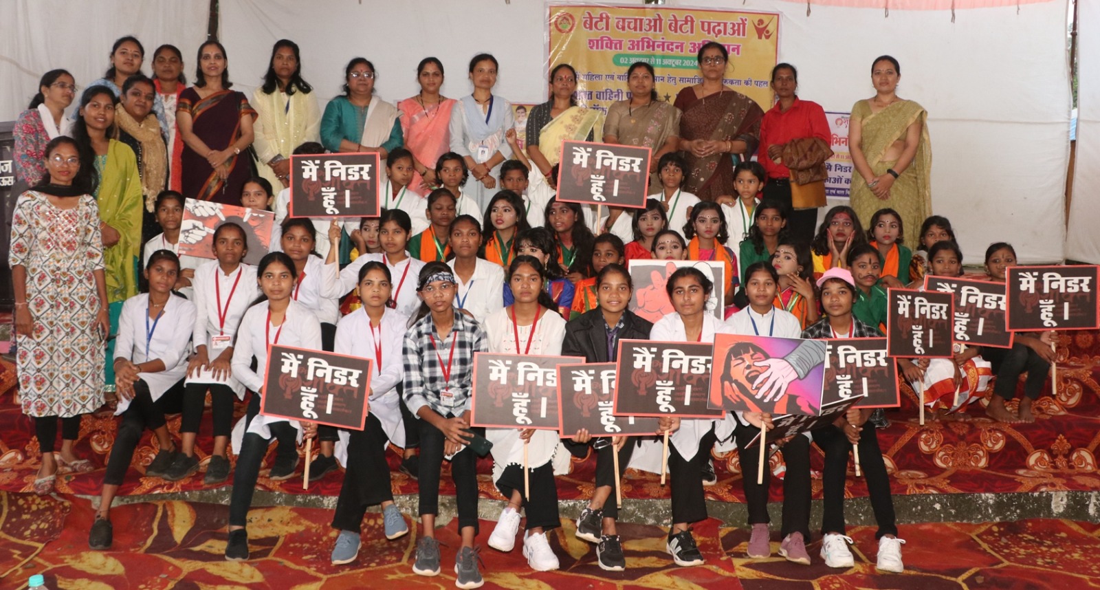 कार्यक्रम की शुरूआत भगवान गणेश जी की आरती वंदना करने के पश्चात छोटी छोटी बालिकाओं के द्वारा स्वागतम गीत पर नृत्य कर सभी आगन्तुकों का स्वागत किया गया। कार्यक्रम की अगली कडी में काली मां थीम पर बालिकाओं के ऊपर हो रहे अत्याचार के खिलाफ विरोध प्रदर्शन का नाट्य के द्वारा किया गया जिसमें बालिकाओं के द्वारा प्रदर्शन करते हुये यह बताया गया कि अगर बालिकाओं एवं महिलाओं के ऊपर अत्याचार नही रूका तो जिस प्रकार रक्तबीज का संहार करने के लिये माता काली का रूप लिया उसी प्रकार उन सभी अत्याचारियों का विनास नारी शक्ति के द्वारा निश्चित है। कार्यक्रम की अगली कडी में मार्सल आर्ट के द्वारा खुद की सुरक्षा (आत्मरक्षा) प्रदान करना है इस संबंध में बालिकाओं के द्वारा प्रदर्शन किया गया और मार्सल आर्ट में हाथ पैरों के इस्तेरमाल को बताया गया। कार्यक्रम की अगली कडी में झासी की रानी लक्ष्मी बाई के तर्ज में प्रदर्शन कर बालिकाओं एवं महिलाओं को सशक्त करने का संदेश दिया ।