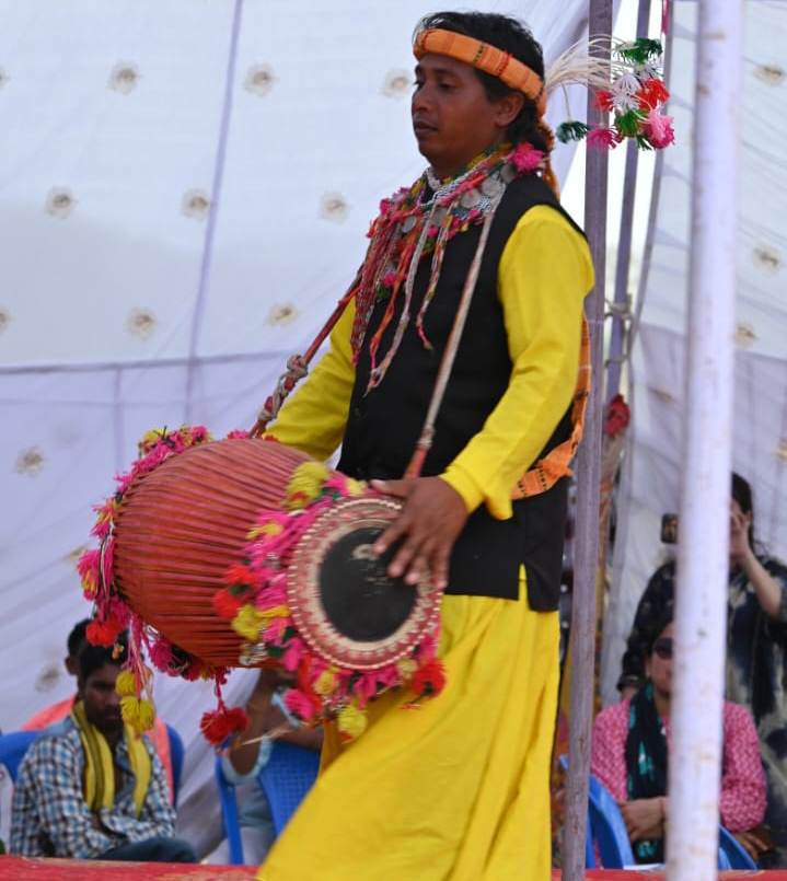 लेखपाल सिंह धुर्वे डिंडौरी के मेढ़ाखार ग्राम के निवासी हैं लेखपाल सिंह धुर्वे धुलिया जनजाति सें संबंधित हैं। श्री लेखपाल सिंह धुलिया जनजाति के गुदुम बाजा की परंपरा को आगे बढाने का कार्य कर रहे हैं। लेखपाल सिंह ने बताया कि गुदुम बाजा, डफ्ला, मंजीरा, टिमकी आदि हमारे परंपरागत वाद्य यंत्र हैं। गुदुम बाजा हमारे आदिवासी समाज में सम्मानीय हैं जिसे विवाह, जन्म, उत्सव, पर्व आदि शुभ अवसरों पर बजाकर संस्कृति में समावेशित करते हैं। हमारे समूह ने गुदुम बाजे को संस्कृति विभाग भारत सरकार, संस्कृति विभाग भोपाल, क्षेत्रीय सांस्कृतिक केन्द्र के सहयोग द्वारा डिंडौरी से भारत के कोने-कोने तक पहुंचाया है। उन्होंने बताया कि उन्होंने भारत के विभिन्न राज्यों में गुदुम बाजे की प्रस्तुति दी है। पिछले 20 वर्षों से वह गुदुम बाजा की प्रस्तुति दे रहे हैं। उन्होंने बताया कि महामहिम राष्ट्रपति के समक्ष प्रस्तुति करना हमारे लिए सम्मान का विषय है हमारे समूह में कोमल सिंह श्याम, विश्वनाथ लाल धुर्वे और सुखीराम मरावी जनजातीय गौरव दिवस पर गुदुम बाजा की प्रस्तुति देंगे।