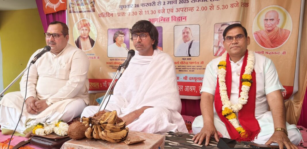 सेवाजोहार (डिंडोरी):- स्वामी श्रद्धानंद वैदिक गुरुकुल बिछिया में आठ दिन चला ऋग्वेद पारायण महायज्ञ। जानकारी अनुसार शहपुरा विकासखंड क्षेत्र की ग्राम बिछिया में दो फरवरी को पूर्णाहुति में सेंकड़ों श्रद्धालुओं ने आहुति प्रदान की। यज्ञ में गुरुकुल संचालक आचार्य धीरेन्द्र पांडेय ने क्षेत्र के लोगों को वैदिक सनातन धर्म पर चलने की प्रेरणा दी। राजस्थान से पधारे मुख्य वक्ता आचार्य सोमदेव आर्य ने वेदों का महत्व, यज्ञ का महत्व बताया। अपने इतिहास को पढ़ने की प्रेरणा दी। बरेली से आए पं भानु प्रकाश ने भजनों के माध्यम से भक्तों को मंत्रमुग्ध किया। कार्यक्रम में जबलपुर, नरसिंहपुर, बिहार, रांची आदि अनेक स्थानों से नर नारी पधारे।गुरुकुल के लिए भूमि दाता यज्ञ मुख्य यजमान चम्मूलाल झारिया, उमाशंकर चौकसे, गंगा चरण चौकसे,अमित राय,विनोद , संतोष आदि ने व्यवस्था सम्हाली।