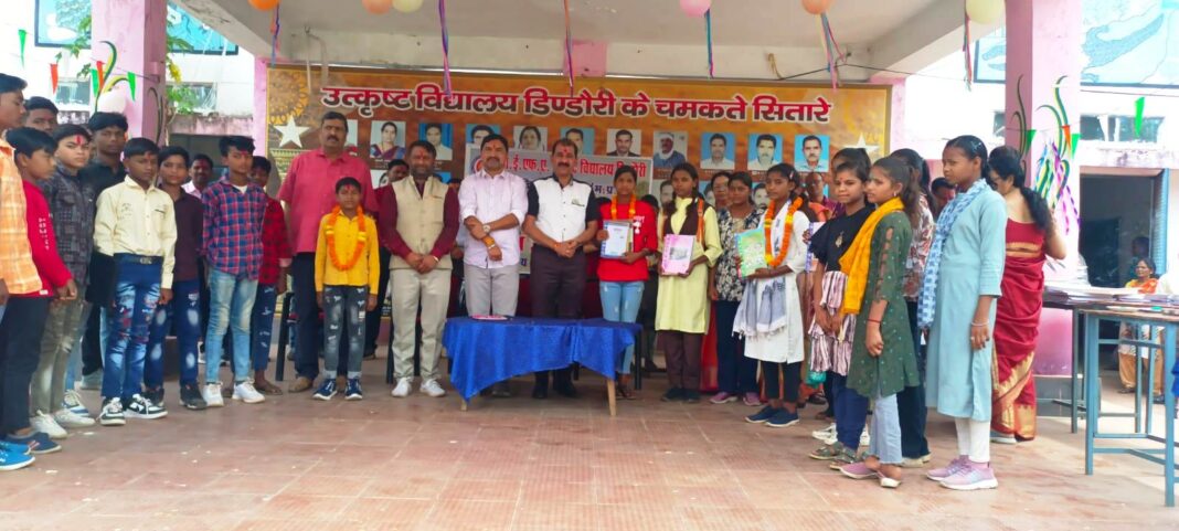 उपस्थित कक्षा 9 वीं से 12 तक के विद्यार्थियों को अतिथियों के करकमलो से निःशुल्क पाठ्य पुस्तकों का वितरण भी किया गया। पंकज तेकाम ने विद्यार्थियों को संबोधित करते हुए कहा कि उत्कृष्ट विद्यालय डिंडौरी का गौरवशाली इतिहास रहा है यहाँ से अनेक प्रतिभाए निकली है अतः आप सभी मन लगाकर पढ़ाई करे। श्री नरेंद्र राजपूत ने विद्यार्थियों को अनुसाशन एवं प्रतिदिन विद्यालय आने की सलाह दी। प्रवेश उत्सव कार्यक्रम में प्राचार्य एस के द्विवेदी, वरिष्ठ शिक्षिका लतिका डेनियल, उपासना चौबे, हंसा तेकाम, पुरूषोत्तम कुशराम व विद्यार्थियों के साथ पालक भी उपस्थित रहे।