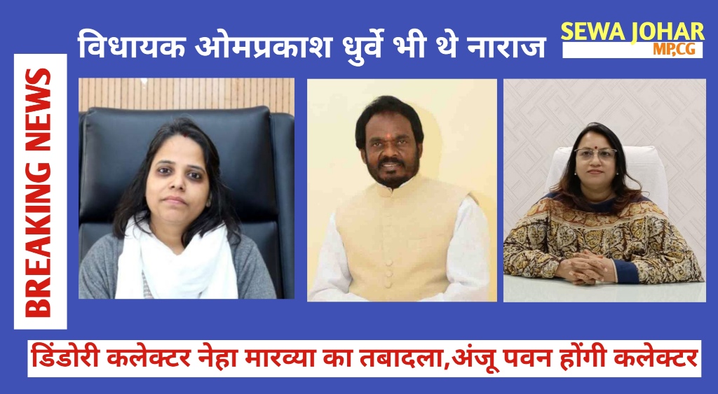 वही जिले के बैगा जनजाति के लोग भी बड़ी संख्या में अपने जमीनी अधिकार को लेकर डिंडोरी कलेक्ट्रेट पहुंचे थे लेकिन उन्हें परेशान ही होना पड़ा,जिस पर कड़ा विरोध जिला प्रशासन के खिलाफ विधायक ओमप्रकाश धुर्वे का दिखा। बहरहाल विधायक ओमप्रकाश धुर्वे की नाराजगी से जिले की जनता कयास लगा रही थी कि कलेक्टर नेहा मारव्या ज्यादा समय के लिए डिंडोरी में नहीं रह पाएंगी और हुआ भी यही,8 माह का कार्यकाल बिता चुकी नेहा मारव्या को मंत्रालय में अपर सचिव बनाया गया है।