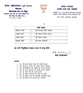 वही जयसिंह चावड़ा को किसान मोर्चा प्रदेश अध्यक्ष,भगवान सिंह परमार को एससी मोर्चा प्रदेश अध्यक्ष,पवन पाटीदार को पिछड़ा मोर्चा प्रदेश अध्यक्ष बनाया गया।