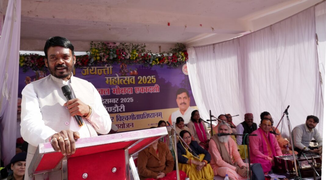 सभा को संबोधित करते हुए शहपुरा विधायक ओमप्रकाश धुर्वे ने कहा कि श्रीमद्भगवद्गीता जीवन की जटिल परिस्थितियों में भी सही दिशा दिखाती है। उन्होंने कहा कि “गीता का सिद्धांत – कर्म करो, फल की चिंता मत करो – आज भी उतना ही प्रासंगिक है। विधायक ने कहा कि मनुष्य जीवन भर कमाई और दायित्वों में व्यस्त रहता है, इसलिए 50 वर्ष की आयु के बाद व्यक्ति को अपने लिए भी समय निकालना चाहिए।