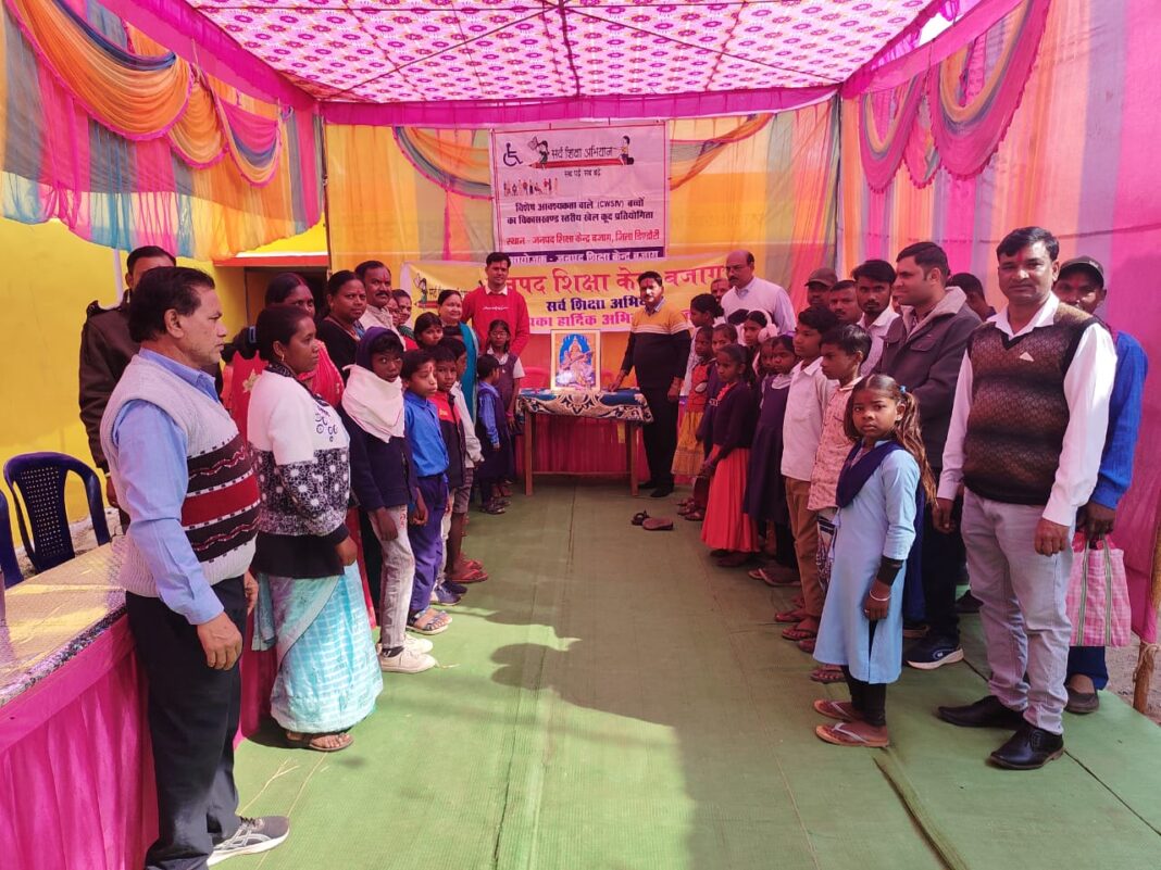 सेवाजोहार (डिंडोरी):- विश्व दिव्यांग दिवस पर जिले के बजाग में विकासखण्ड स्तरीय शिविर का आयोजन जनपद शिक्षा केन्द्र परिसर में किया गया। जिसमें विकासखण्ड बजाग से विभिन्न शालाओं से कक्षा 1 से 8 वीं तक के दिव्यांग बच्चों ने भाग लिया। जिसका मुख्य उद्देश्य यह था कि इन बच्चों को भी समान्य बच्चों के तरह ही मुख्य धारा में जोडना। इसी क्रम में दिव्यांग बच्चों के द्वारा चित्रकला, रंगोली, कुर्सी दौड, गायन, नृत्य, दौड आदि प्रतियोगिताओं का आयोजन किया गया। सभी दिव्यांग बच्चों ने बढ़-चढ़ कर भाग लिया। प्रतियोगिता उपरान्त बच्चों को टिफिन का सेट, पानी बॉटल, पेन, कम्पास पुरुस्कार वितरण किया गया तथा दिव्यांग बच्चों तथा अभिभावकों एवं साथ में आये शिक्षकों को लंच के पैकेट दिये गये। विकासखण्ड स्तर पर विभिन्न प्रतियोगिताओं में चयनित 10 दिव्यांग बच्चों को दिनांक 03/12/2025 को जिला स्तर के कार्यक्रम में भाग लेंगे कार्यक्रम में बी.आर.सी. ब्रजभान सिंह गौतम, बी.ए.सी. संजय जैन, बलवन्त साहू, दीपेन्द्र चौहान, अरूण चौधरी, एम.आर.सी. मुकेश झारिया, जनशिक्षक विनोद साहू, सुखसेन मरावी, गुलेन्द्र हरिनखेड़े, रामू लाल सोनी, महेन्द्र मॉनिकपुरी एम.आई.एस.को. नीलेश धूरिया, कंम्प्यूटर ऑपरेटर हेमन्त पाठक व भृत्य अरूण श्रीवास जनपद शिक्षा केन्द्र बजाग एवं विभिन्न शालाओं से आये शिक्षक गण उपस्थित रहे। कार्यक्रम का समापन बी.आर.सी ब्रजभान सिंह के उद्बोधन उपरान्त किया।