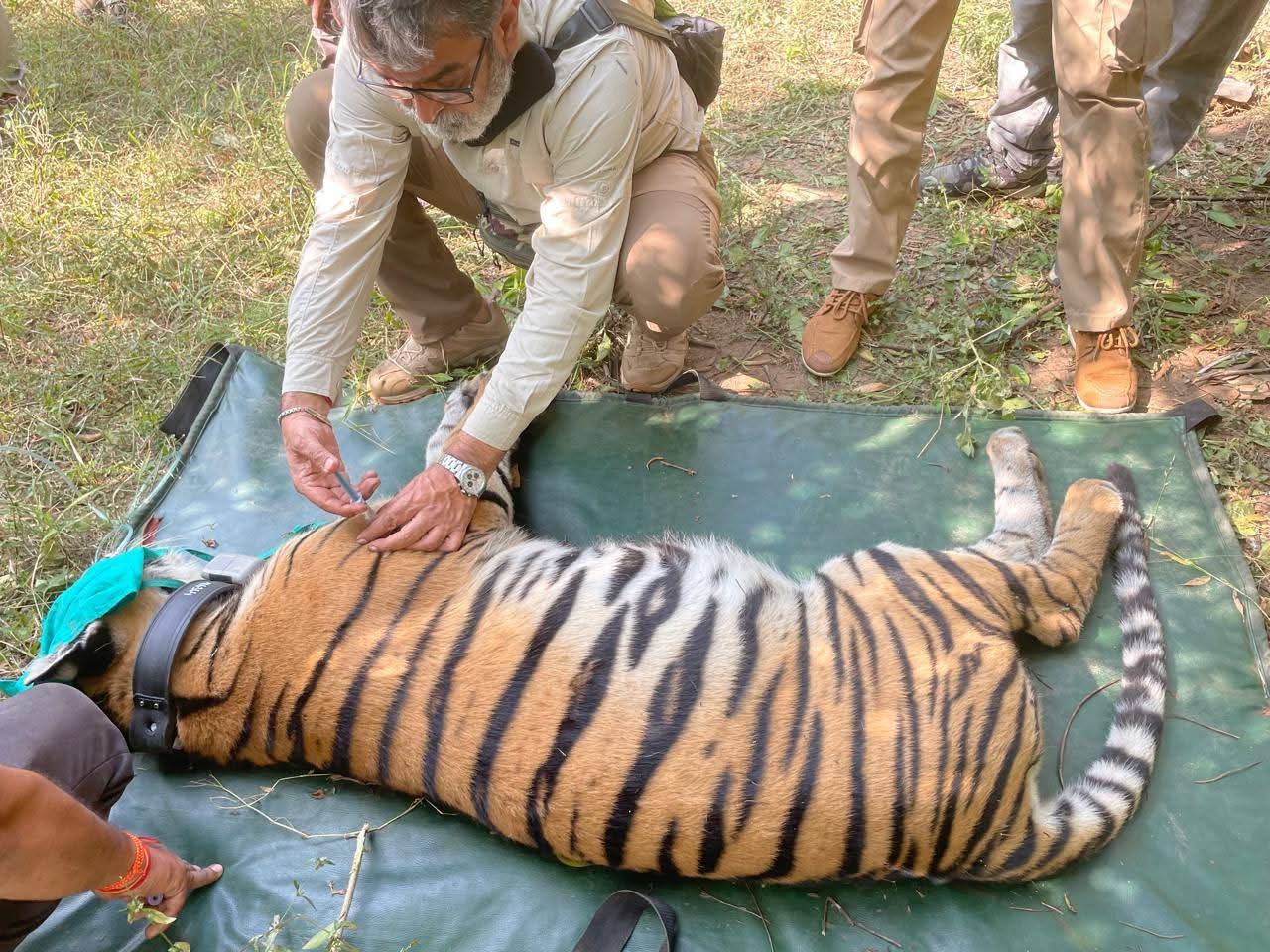 हाथी दस्तों की मदद से बाघिन को ढूंढकर उसकी पहचान की पुष्टि की गई। इसके बाद डॉ. अखिलेश मिश्रा के नेतृत्व में तथा डॉ. अमित कुमार ओड की उपस्थिति में मौजूद विशेषज्ञ पशु चिकित्सा टीम ने बाघिन को सुरक्षित रूप से ट्रेंकुलाइज किया। निर्धारित वन्यजीव प्रोटोकॉल के अनुसार प्रशिक्षित टीम द्वारा बाघिन को रेडियो कॉलर पहनाया गया।