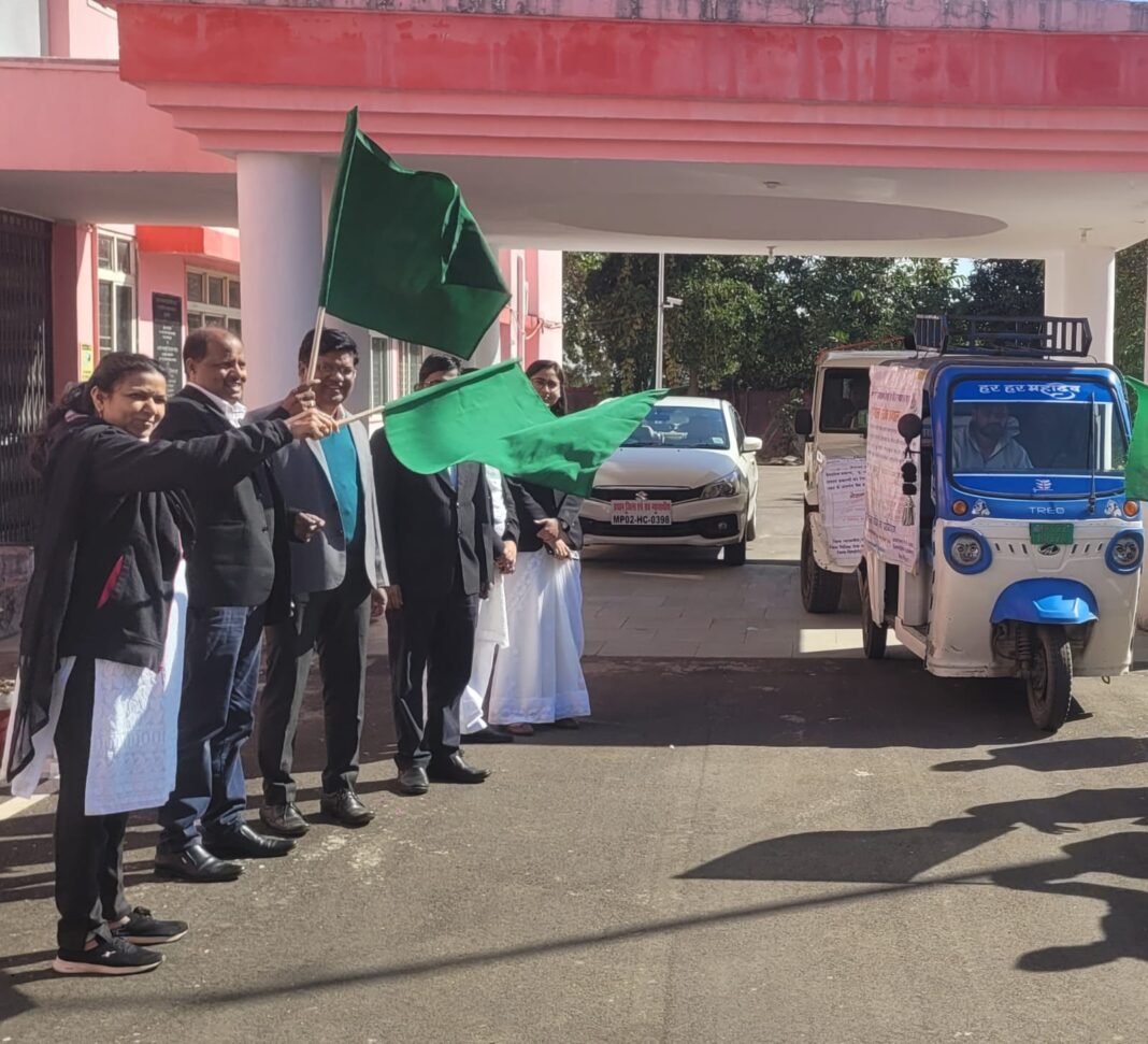 सेवाजोहार (डिंडोरी):- जिला न्यायालय डिंडौरी एवं तहसील न्यायालय शहपुरा में आगामी 13 दिसंबर 2025 को आयोजित होने वाली नेशनल लोक अदालत के सफल संचालन एवं अधिकतम प्रकरणों के निराकरण के लिए व्यापक स्तर पर जन-जागरूकता अभियान शुरू किया गया। इसी कड़ी में प्रधान जिला एवं सत्र न्यायाधीश / अध्यक्ष जिला विधिक सेवा प्राधिकरण शशिकान्ता वैश्य द्वारा मंगलवार को शहरी एवं ग्रामीण क्षेत्रों में प्रचार-प्रसार हेतु विशेष वाहन को हरी झंडी दिखाकर रवाना किया गया।