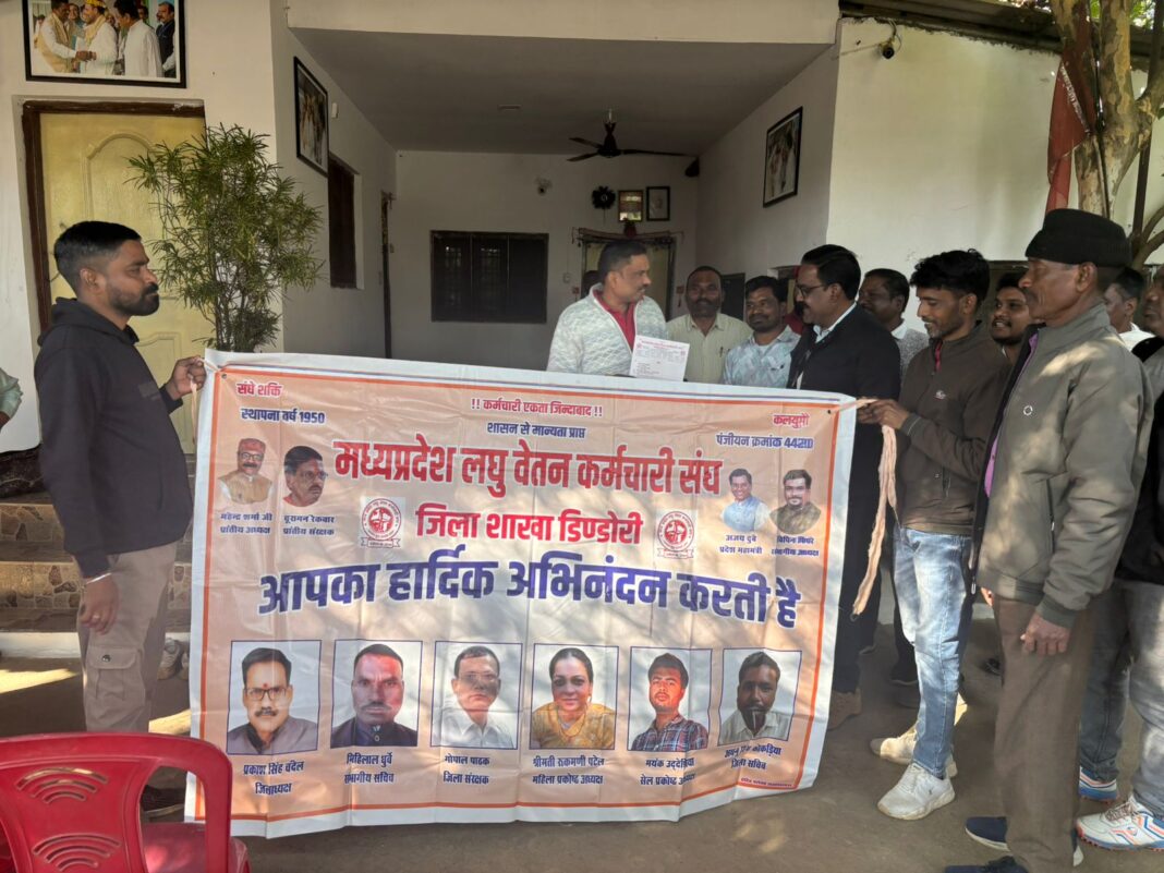 सेवाजोहार (डिंडोरी):- मप्र लघु वेतन कर्मचारी संघ ने अपनी लंबित मांगों के शीघ्र निराकरण के लिए संघ जिलाध्यक्ष प्रकाश सिंह चंदेल के नेतृत्व में डिंडोरी विधायक ओमकार मरकाम के निवास में पहुंचकर 15 सूत्रीय मांगों का ज्ञापन सौंपते हुए समस्याओं से अवगत कराया। संघ ने विधायक को वेतन वृद्धि, पदोन्नति, पदस्थापना और नियमितीकरण की मांग को लेकर अपना विरोध दर्ज कराया। प्रकाश सिंह चंदेल ने ज्ञापन में बताया कि भृत्य का नाम परिवर्तन कर कार्यालय सहायक, नियमित कर्मचारियों का ग्रेड पे में संशोधित कर 1300 के स्थान पर 1800 किया दैनिक वेतनभोगियों को स्थाई कर्मी किया जाना एवं स्थाई कर्मीयों नियमित किया जाना नियुक्ति तिथि से वरिष्ठता का लाभ दिया जाना, अंशकालीन कर्मचारियों को दैनिक वेतनभोगी किया जाना,आंगनबाड़ी कार्यकर्ताओं और सहायिकाओं को शासकीय कर्मचारी घोषित करने समेत ग्राम रक्षकों (कोटवार) को नियमित सेवा का दर्जा दिया जाए।