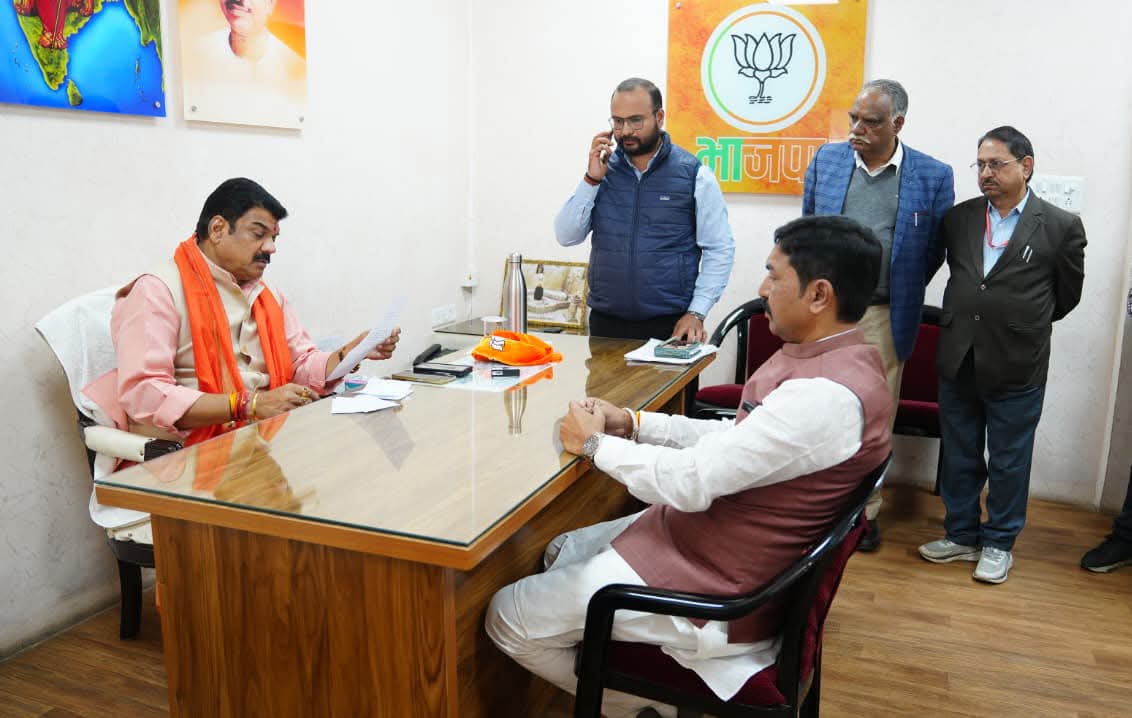 सेवाजोहार (डेस्क):- भाजपा प्रदेश कार्यालय, भोपाल में आयोजित जनसुनवाई के दौरान खाद्य, नागरिक आपूर्ति एवं उपभोक्ता संरक्षण विभाग के मंत्री गोविंद सिंह राजपूत से पंकज सिंह तेकाम (प्रदेश अध्यक्ष अनुसूचित जनजाति मोर्चा) ने शाल ओढ़ाकर आत्मीय स्वागत किया गया।