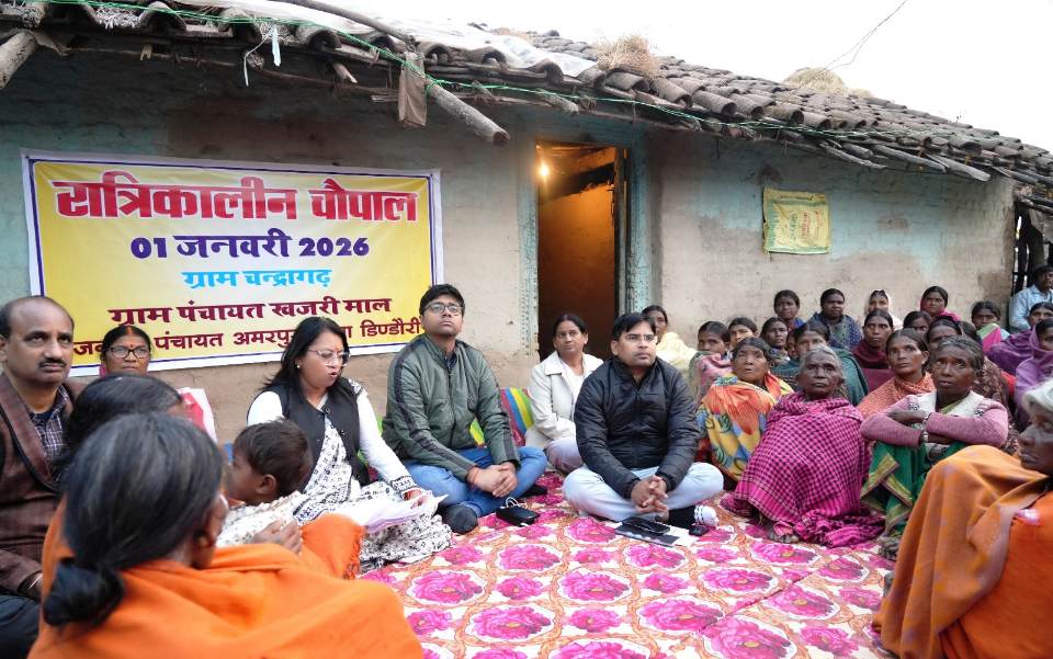 सेवाजोहार (डिंडोरी):- मुख्यमंत्री मध्य प्रदेश शासन के निर्देशों के अनुपालन में ग्रामीणों की समस्याओं के त्वरित निराकरण हेतु कलेक्टर अंजू पवन भदौरिया की उपस्थिति में विकासखंड अमरपुर के ग्राम चंद्रागढ़, पंचायत खजरी माल में जमीन पर बैठकर रात्रि कालीन चौपाल का आयोजन किया गया। नववर्ष के प्रथम दिन आयोजित इस चौपाल में जिला प्रशासन का पूरा अमला बैगा बाहुल्य बस्ती में मौजूद रहा।