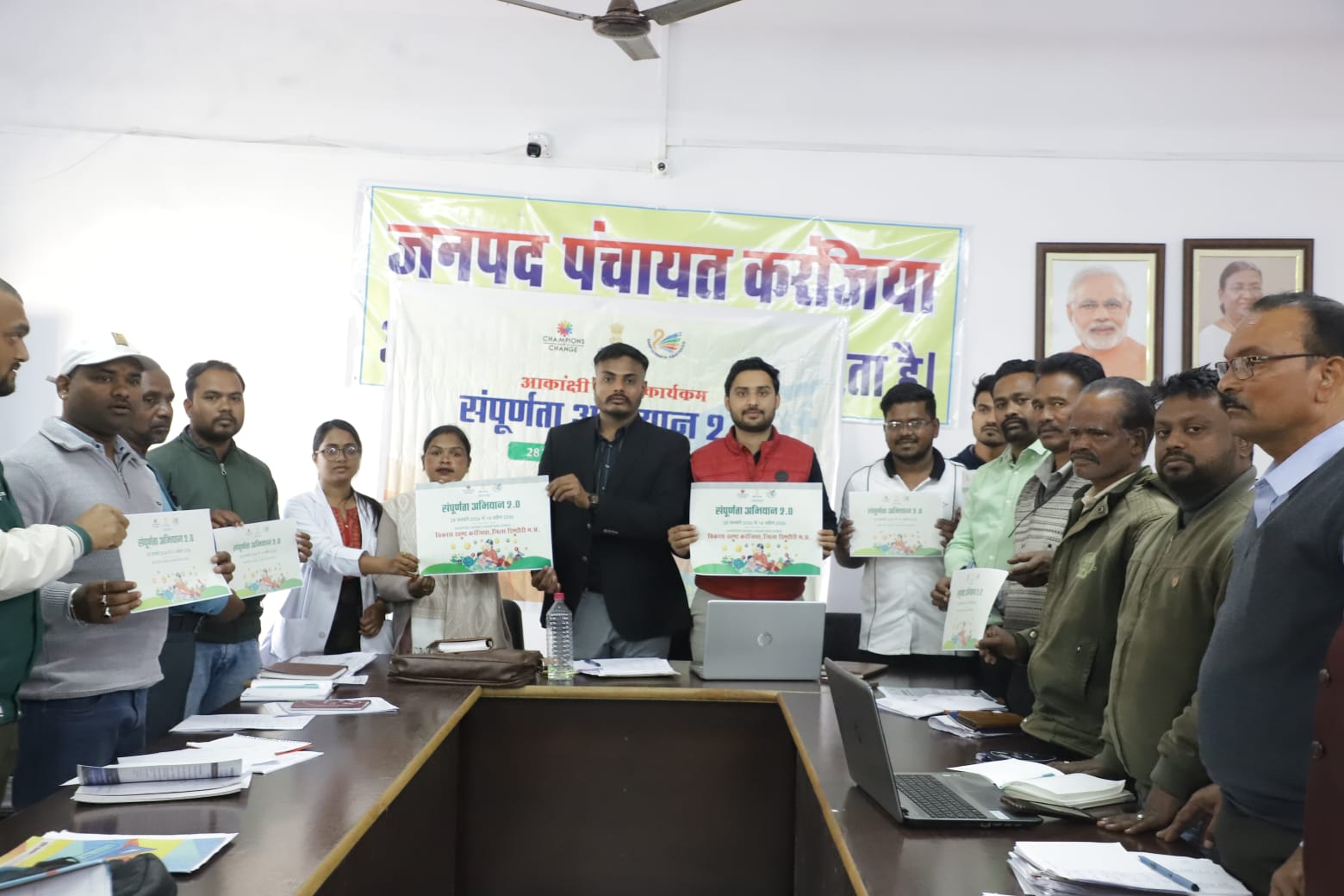 डिप्टी कलेक्टर अक्षय डिगरसे, सहायक उपयंत्री कशिश नायक, महिला बाल परियोजना करंजिया शशि सांडया, ब्लॉक समन्वयक महफूज़ खान, सहायक कृषि विस्तार अधिकारी अजय भार्गव, सहायक विकास अधिकारी लवकेश सिंह ठाकुर, सहायक पशु चिकित्सा क्षेत्राधिकारी डॉ. राजीव सिंह, चिकित्सा विभाग से डॉ मंजीत रावत, सीएसओ, एएनएम, आशाकार्यकर्ता, खंड पंचायत अधिकारी इग्नेश लाकड़ा, पंचायत समन्वय अधिकारी, सामाजिक सुरक्षा अधिकारी कमलेश्वर धुर्वे, 42 ग्राम पंचायतों के सचिव, रोजगार सहायक, मोबाइलजर, संपूर्णता अभियान 2.0 का पोस्टर विमोचन कर कार्यक्रम की संक्षिप्त जानकारी नीति आयोग से हरीश विश्वकर्मा विकासखंड से जुड़े अन्य विभागों के अधिकारी एवं कर्मचारी उपस्थित रहे।