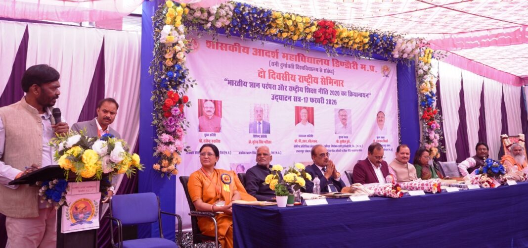 सेवाजोहार (डिंडोरी):– शासकीय आदर्श महाविद्यालय डिंडौरी द्वारा 17 से 18 फरवरी 2026 तक दो दिवसीय राष्ट्रीय सेमीनार का आयोजन ‘‘भारतीय ज्ञान परंपरा और राष्ट्रीय शिक्षा नीति 2020 का क्रियान्वयन’’ विषय पर किया गया।