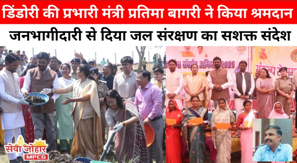 सेवाजोहार (डिंडोरी):– जल संरक्षण एवं संवर्धन को जन-आंदोलन का स्वरूप देने के उद्देश्य से संचालित जल गंगा संवर्धन अभियान के अंतर्गत ग्राम पंचायत रूसा के पोषक ग्राम घानामार में गुरुवार को भव्य श्रमदान एवं हितलाभ वितरण कार्यक्रम का आयोजन किया गया। कार्यक्रम की अध्यक्षता नगरीय विकास एवं आवास विभाग की राज्यमंत्री एवं जिले की प्रभारी मंत्री प्रतिमा बागरी ने की।