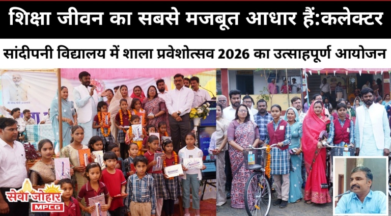 सेवाजोहार (डिंडोरी/शहपुरा):- विकासखंड शहपुरा के सांदीपनी विद्यालय में शाला प्रवेशोत्सव 2026 का गरिमामय एवं उत्साहपूर्ण आयोजन संपन्न हुआ। कार्यक्रम का शुभारंभ विधायक ओमप्रकाश धुर्वे एवं कलेक्टर अंजू पवन भदौरिया द्वारा मां सरस्वती के तैलचित्र पर पुष्पांजलि अर्पित कर, तिलक वंदन एवं सरस्वती वंदना के साथ किया गया।