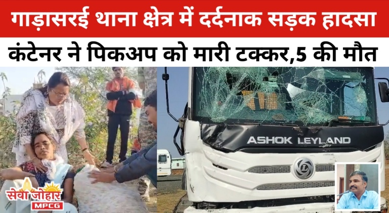 सेवाजोहार(डिंडोरी):- जिले के बजाग तहसील अंतर्गत गाड़ासरई थाना क्षेत्र के किकरा तालाब गांव के समीप राष्ट्रीय राजमार्ग-45 पर हुई भीषण सड़क दुर्घटना में जिला प्रशासन ने त्वरित कार्रवाई करते हुए राहत एवं बचाव कार्य प्रभावी रूप से संचालित किया। घटना रात लगभग 1 बजे की बताई जा रही है, जिसमें तेज रफ्तार ट्राला कैप्सूल वाहन की चपेट में आने से 5 लोगों की दुखद मृत्यु हो गई, जबकि एक व्यक्ति घायल हो गया।
