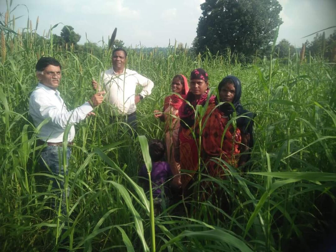 हाल ही में जमीनी अधिकारी के.एस. नेताम संयुक्त संचालक कृषि विभाग जबलपुर ने बाजरा के खेत में आदिवासी महिला किसान को प्रोत्साहित कर रहें हैं।