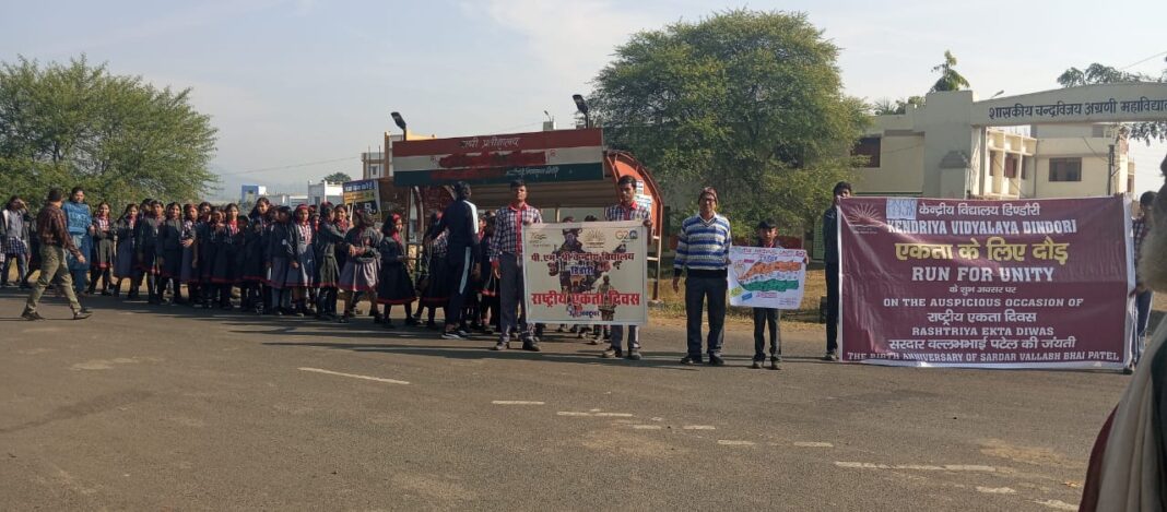 डिंडोरी : भारत रत्न सरदार वल्लभ भाई पटेल जी की जयंती के सुअवसर पर पीएम श्री केन्द्रीय विद्यालय डिंडोरी में राष्ट्रिय एकता दिवस के रूप में मनाया गया। प्रातः काल विद्यालय से नगर चौराहे तक एकता दौड़ का आयोजन किया गया जिसमें प्राचार्य समेत सभी शिक्षक और विद्यालय के समस्त बच्चों ने दौड़ कर राष्ट्रीय एकता का संदेश दिया। एकता दौड़ के बाद विद्यालय में प्राचार्य आर एस उलाड़ी द्वारा पटेल जी की फोटो पर दीप प्रज्वलन,माल्यार्पण और पुष्पांजलि अर्पित कर कार्यक्रम का शुभारंभ किया। छात्रों में से यशश्वी राव और संपदा गांडवे ने भाषण प्रस्तुत किया और ओजश्वी बिलैया ने स्वरचित कविता प्रस्तुत की। प्रियंका सोनी और के आर मीना ने सरदार वल्लभ भाई पटेल जी के व्यक्तित्व और उनके राष्ट्र प्रेम पर अपने विचार साझा किए गए। प्राचार्य आर उलाड़ी ने अपने उद्बोधन में बच्चों को एकता की आवश्यकता और एकता के महत्व को रेखांकित करते हुए उन्हें देशप्रेम के लिए जागरूक किया। उन्हें सरदार वल्लभ भाई पटेल के जीवन से सीखने वाले गुणों को बताया। धन्यवाद ज्ञापन तन्मय सुहाने ने देकर कार्यक्रम का समापन किया।