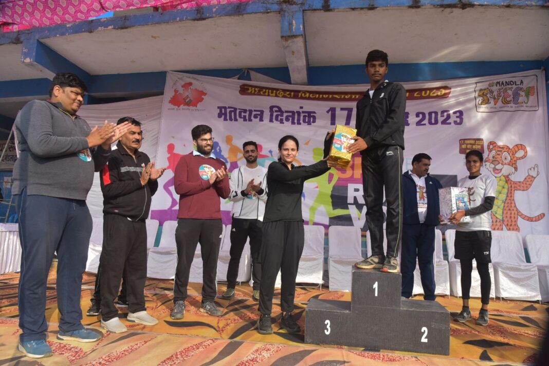 इन्हें मिला पुरुष्कार : स्वीप गतिविधियों के तहत आयोजित रन-फॉर-वोट में बालक वर्ग में ओम चन्द्रोल को प्रथम, अनुराज धुर्वे को द्वितीय, अरविंद परते को तृतीय, अभय परते एवं संतोष बैरागी को चतुर्थ पुरूस्कार प्रदान किया गया। इसी प्रकार बालिका वर्ग में वर्षा पुन्हा को प्रथम, कलकली कुम्हरे को द्वितीय, संतोषी मरावी को तृतीय, महिमा लखेरा एवं रश्मि कुड़ापे को चतुर्थ पुरूस्कार प्राप्त हुआ।