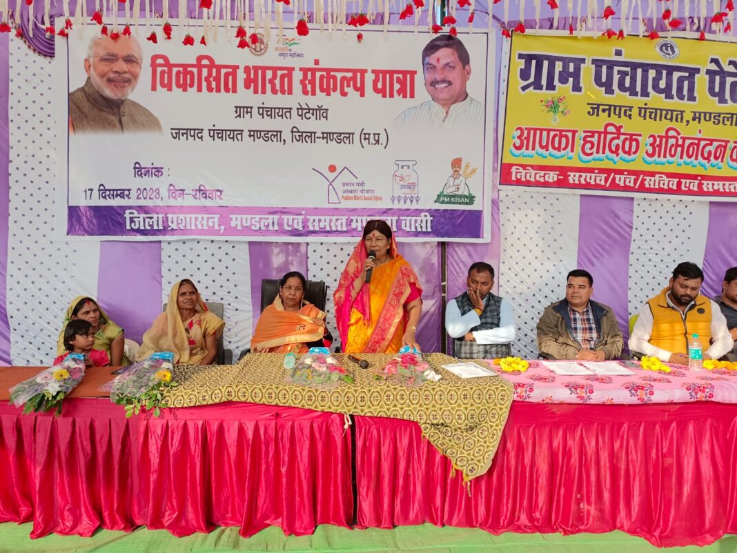 ग्राम पेटेगांव में आयोजित कार्यक्रम को विधायक संपतिया उईके ने अपने संबोधन में कहा कि सभी वर्ग के हितों को ध्यान में रखते हुए शासन द्वारा विविध योजनाएं संचालित की जा रही हैं। भारत को दुनिया का सर्वश्रेष्ठ देश बनाने के लिए प्रत्येक व्यक्ति को विकास की मुख्य धारा से जोड़ना आवश्यक है। उन्होंने उपस्थित ग्रामीणजनों का आव्हान किया कि वे कार्यक्रम स्थल में लगाए गए स्टॉलों में अपना पंजीयन कराते हुए पात्रतानुसार शासन की योजनाओं का लाभ उठाएं।