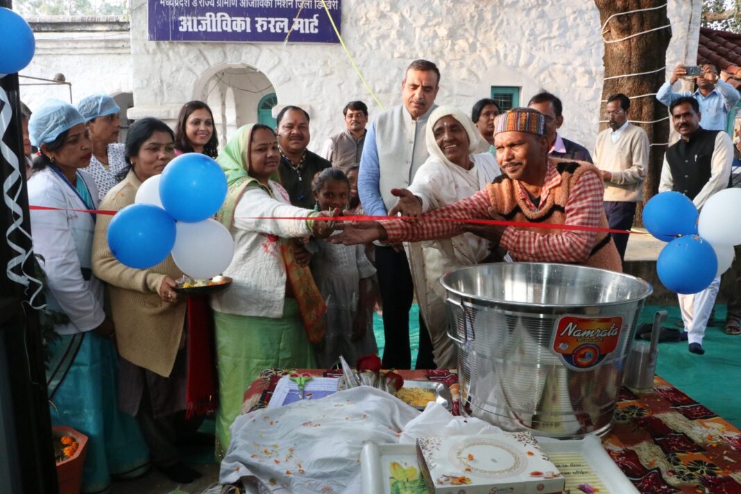 डिंडोरी : कलेक्टर विकास मिश्रा के निर्देशन में 01 जनवरी 2024 को नववर्ष के दिन आनंदम दीदी कैफे मंस गोकुल डेयरी का शुभारंभ किया गया। साध्वी नीमा बाई ने फीता काटकर गोकुल डेयरी का शुभारंभ किया। इस दौरान नगर परिषद अध्यक्ष श्रीमती सुनीता सारस व पार्षद महेन्द्र दाहिया सहित अन्य अधिकारी-कर्मचारी और समूह की दीदियां मौजूद थीं। गोकुल डेयरी का संचालन निशा स्व-सहायता समूह करेगी। इसमें लोगो को 60 प्रतिलीटर शुद्ध दूध मिलेगा, साथ ही दही 60 प्रति लीटर, पनीर 360 रूपए प्रतिलीटर, मठा 40 रूपए प्रतिलीटर मिलेगा। स्व-सहायता समूह की महिलाओं से दूध खरीदकर दीदी कैफे परिसर से नगर वासियों को एलेक्टोमीटर से मापकर शुद्ध दूध विक्रय किया जाएगा। जिससे मिलावटी दूध पर रोक लगाई जा सके।