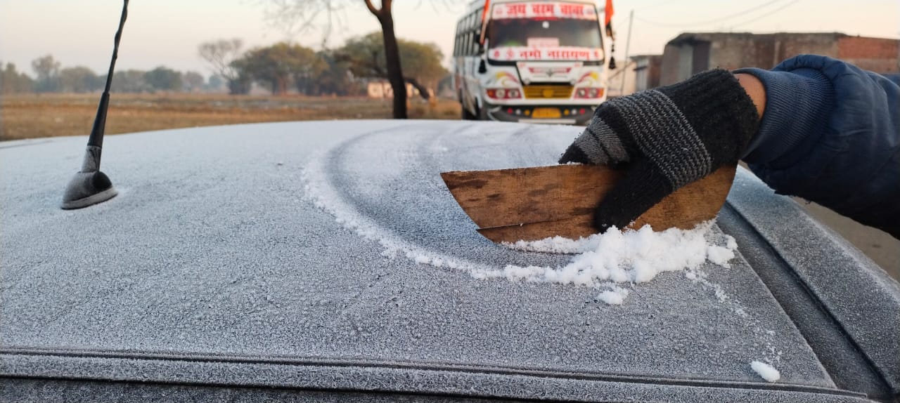 वही गाड़ासरई में सुबह 4 से 6 बजे के बीच वाहनों के ऊपर सफेद बर्फ की परत जम गई जिसे साफ तौर पर देखा जा सकता है।वही अगर तापमान की बात करे तो आज सुबह का तापमान 3 से 4 डिग्री सेल्सियस रहा।