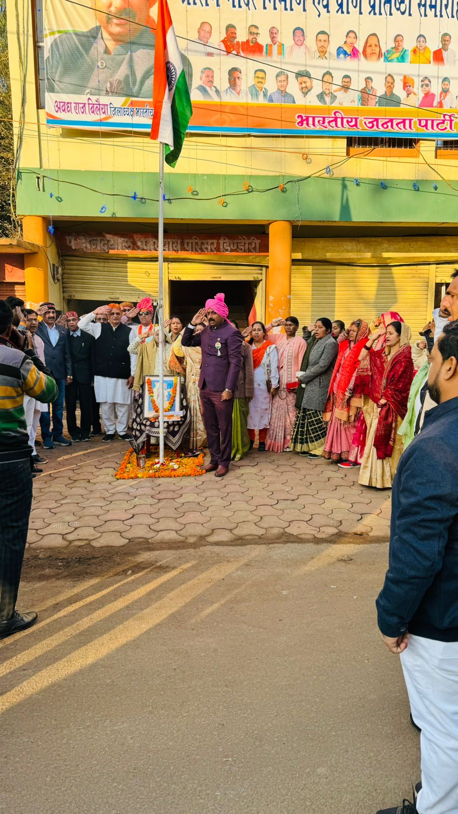 सेवाजोहार (डिंडोरी):– आज पूरे देश में 75 वें गणतंत्र दिवस का पर्व बड़े ही धूमधाम के साथ मनाया जा रहा है। डिंडोरी जिला भाजपा कार्यालय में भारतीय जनता पार्टी के जिलाध्यक्ष अवधराज बिलैया ने ध्वजारोहण कर तिरंगे को सलामी दी। अवधराज बिलैया ने इस दौरान प्रदेशवासियों ,जिलेवासियों को गणतंत्र दिवस के उपलक्ष्य पर ढेर सारी बधाई व शुभकामनाएं दी।