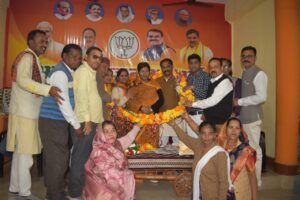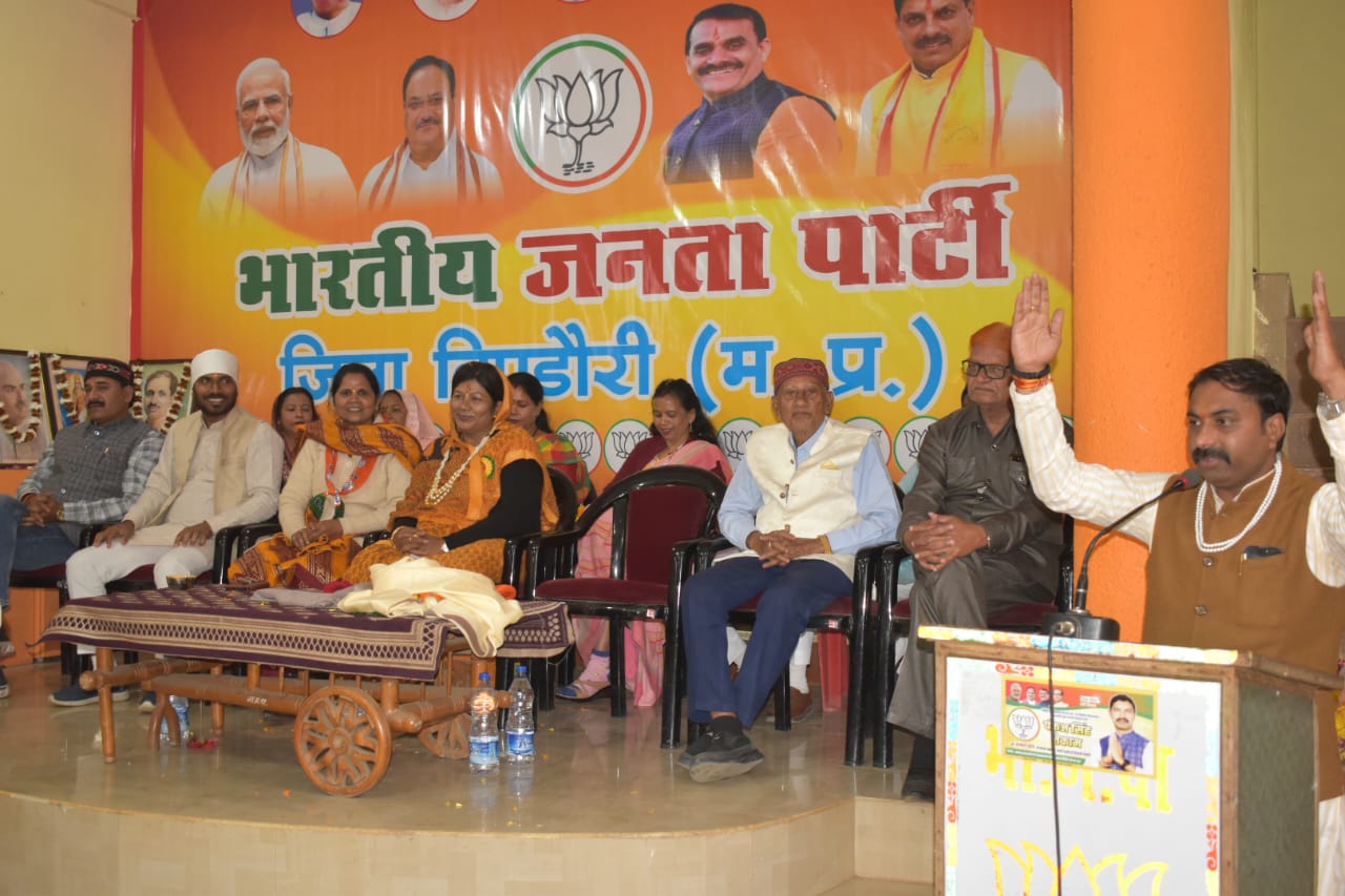सेवाजोहार (डिंडोरी):— भारतीय जनता पार्टी जिला कार्यालय डिण्डौरी में शक्तिवंदन स्व- सहायता समूह सम्पर्क अभियान की जिला कार्यशाला आहुत की गई जिसमें मुख्यातिथि के रूप मे म.प्र. सरकार मे कैबिनेट मंत्री सम्पतिया उईके मौजूद रही। सर्वप्रथम सभी अतिथियों के द्वारा भारत माता, पं. दीनदयाल उपाध्याय, डाॅ. श्यामाप्रसाद मुखर्जी जी के तेलीय चित्र पर दीप प्रज्जवलित कर माल्यार्पण किया। तत्पश्चात् भाजपा जिलाध्यक्ष अवध राज बिलैया ने नव नियुक्त कैबिनेट मंत्री का जिला कार्यालय आगमन पर शाॅॅल श्रीफल भेंट कर उनका आत्मीय स्वागत किया फिर सभी पदाधिकारियो ने एक एक कर मंत्री सम्पतिया उईके का जोरदार स्वागत किया गया। कार्यशाला को संबोधित करते हुए भाजपा जिलाध्यक्ष अवध राज बिलैया ने कहा कि यह अभियान का उद्देश्य 1 करोड़ स्व सहायता समूह एवं एन.जी.ओ. तक सम्पर्क अभियान कर 10 करोड़ से अधिक महिलाओं को प्रधानमंत्री नरेन्द्र मोदी के विकसित भारत संकल्प के साथ जोड़ना है।