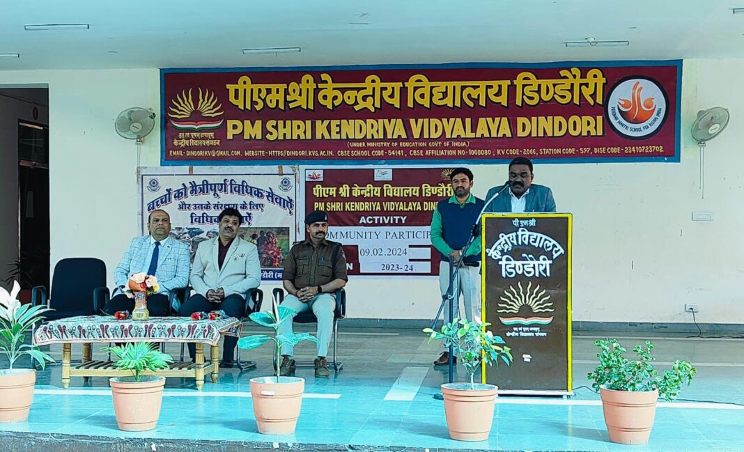 सेवाजोहार (डिंडोरी):- पीएम श्री केन्द्रीय विद्यालय डिंडोरी में पीएम श्री योजना के तहत जिला विधिक सेवा प्राधिकरण डिंडोरी की ओर से सामुदायिक सहभागिता कार्यक्रम का आयोजन किया गया। जिसमें जिला न्यायाधीश उत्तम कुमार डारवी व जिला न्यायाधीश कमलेश कुमार सोनी बतौर मुख्य अतिथि और सहायक उपनिरीक्षक महिला थाना ओम सिंह ठाकुर मुख्य वक्ता के रुप में उपस्थित रहे। कार्यक्रम की शुरुआत विद्यालय के प्राचार्य आर एस उलाड़ी द्वारा पधारे अतिथियों को पुष्पगुच्छ देकर व स्वागत भाषण से की गई।