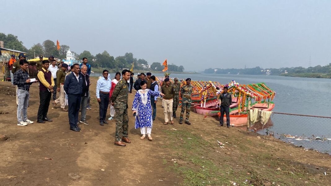 सेवाजोहार (मंडला):- कलेक्टर डॉ. सलोनी सिडाना एवं पुलिस अधीक्षक रजत सकलेचा ने रपटा एवं महाराजपुर संगम घाट का निरीक्षण करते हुए नर्मदा जयंती के तहत की जा रही व्यवस्थाओं का जायजा लेते हुए सभी तैयारियां समय से पहले पूर्ण करने के निर्देश दिए। श्रद्धालुओं को गहरे पानी तक न जाने दें। उन्हांेने घाटांे में बेरीकेटिंग एवं रस्सी लगाने के संबंध में भी आवश्यक निर्देश दिए।